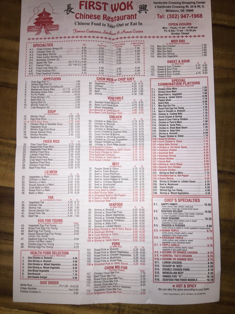 Welcome to First Wok Chinese Restaurant, a hidden gem in Millsboro, DE, renowned for its delicious and authentic Chinese cuisine. The menu boasts an array of flavorful options, perfect for takeout enthusiasts. From the much-praised Moo Shu Pork to the delightful fried dumplings, every dish is crafted with a focus on quality and generous portions.